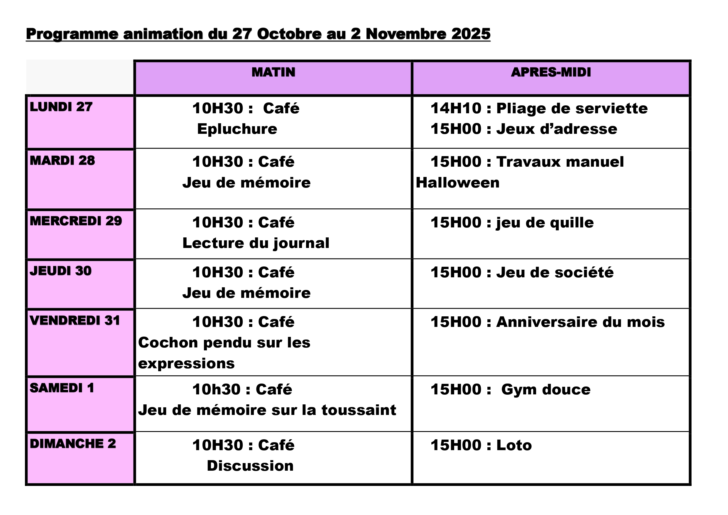 Appuyer sur le bouton ci-dessous pour retrouver les animations en photos