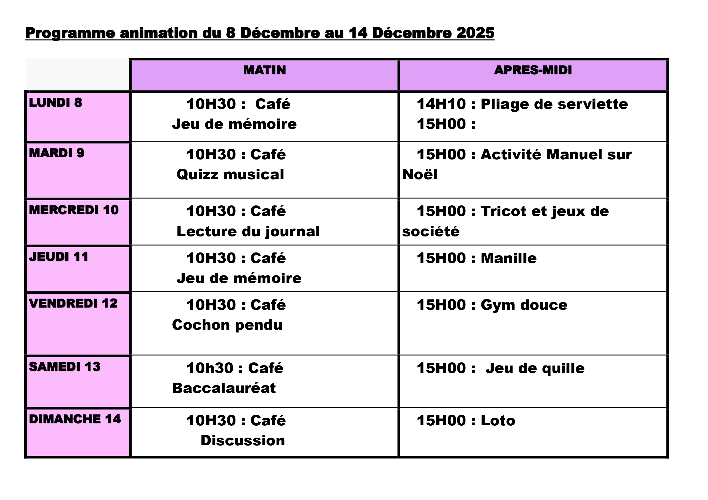 Appuyer sur le bouton ci-dessous pour retrouver les animations en photos